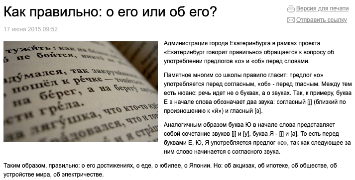 "Предлог "О" употребляется перед всеми согласными и гласными Е,Ё,Я,Ю" - я правильно скриншот рассмотрел? Что не так с "РПЦ" в вашем примере?