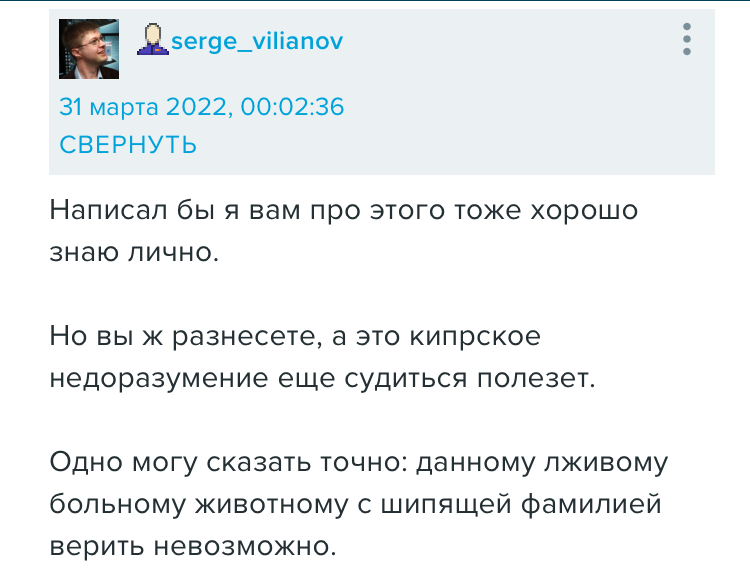 Детали этой истории и переписку со Сбером я пока не публикую, чтобы не кормить троллей, но если кто-то из дружественных СМИ возьмется написать о новой экономической политике Сбера в условиях «спецоперации», то всю полную фактуру я им предоставлю.