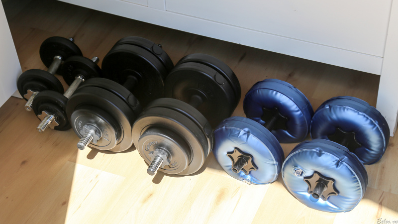 Я уже писал, что с начала карантина во всех испанских магазинах резко пропали гантели. Любые. Видимо, народ разобрал, чтобы было чем заниматься дома, где всех нас заперли на два с половиной месяца. Причем, что интересно, ситуация до сих пор так и не изменилась - на Amazon можно найти только запредельно дорогие гантели, обычные наборные для заказа пока недоступны. Единственное, что я смог заказать на Амазоне - это китайские наливные гантели (они типа как для поездок), но пользоваться ими очень неудобно, к тому же, это фиксированный вес, так что не разгуляешься.