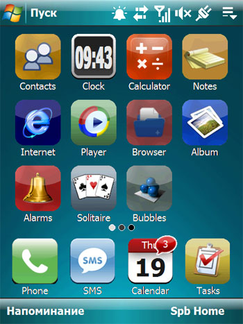 Нашел прикольную программку - iPhone ToDay 1.3 (бесплатная). Делает под Windows Mobile экран "Сегодня" почти такой же, как в iPhone. Выглядит очень даже симпатично и пальцами легко управляется.