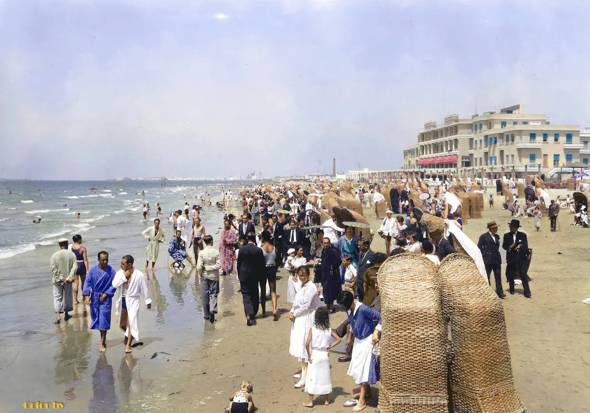 Пляж в Кадисе, 1920 год. (А вот Кадис в 2018 году, когда я там был.)