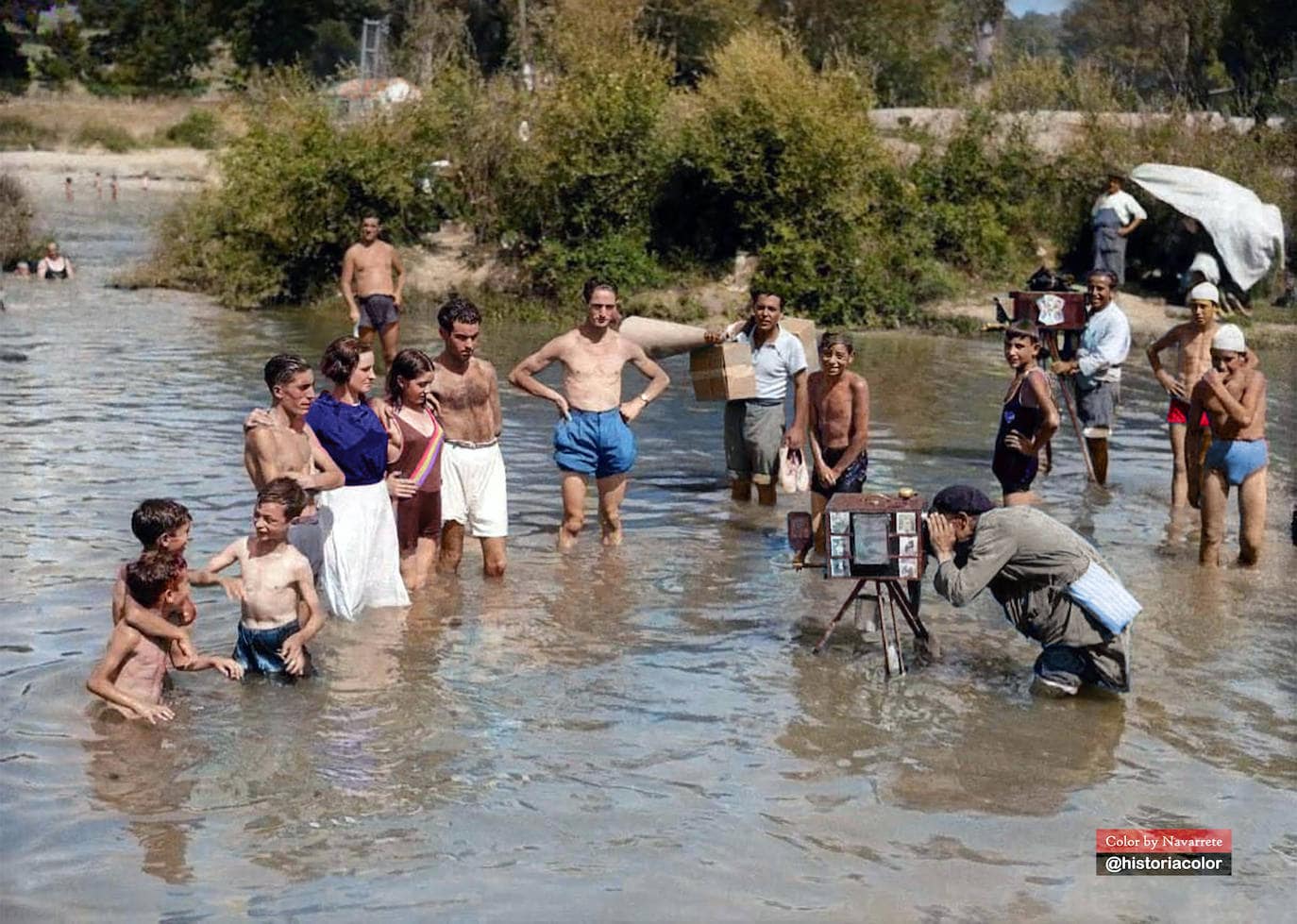 Купальщики в реке Мансанарес (1933): на море в основном отдыхали богачи, рабочие плескались в речках.