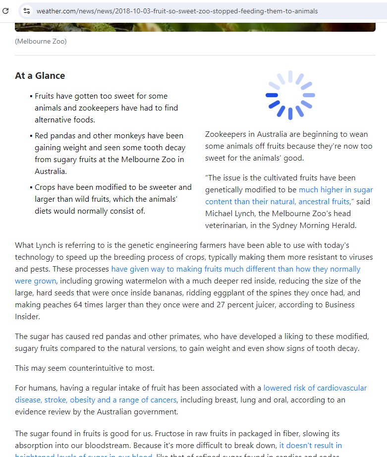 В итоге вон австралийские зоопарки прекращают кормить зверюшек фруктами, а то здоровье подорвать недолго, а они денег стоят.