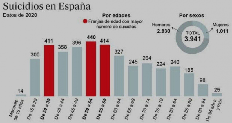 Правда, с намордниками Санчес ситуацию упустил: он ввел требование носить намордники на улице всегда и везде только в мае 2021 года, тогда как власти Каталонии были мудрее и ввели это требование еще в июне 2020 года, благодаря чему Каталония... Что вы говорите? Одно время была на первых местах по заболеваемости? Черт, какая досада. Но главное, что чиновники все сделали правильно - обеспечили пандемию паники и страха, благодаря которой в Испании по 2020 году был совершенно дикий рост суицидов и психических заболеваний.