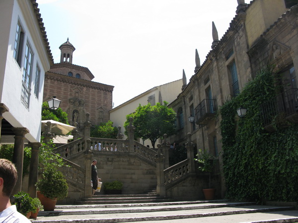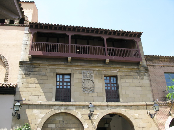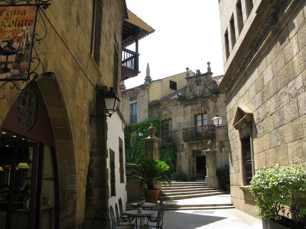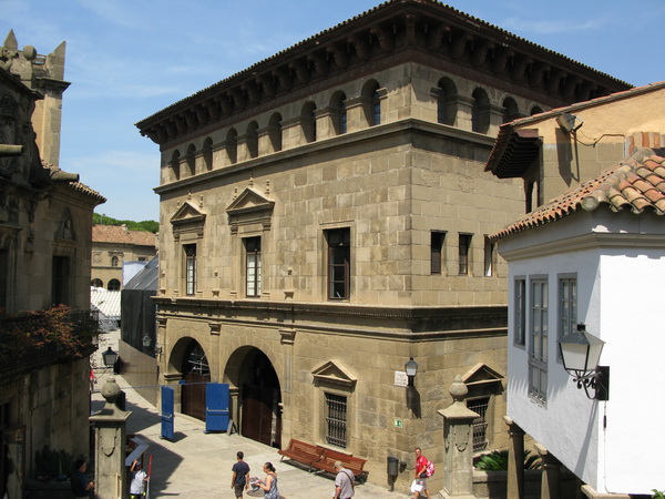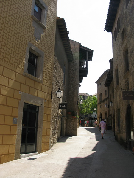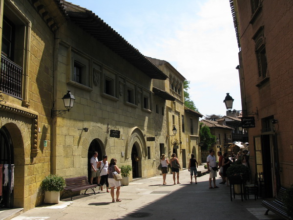В Барселоне на горе Монжуик есть очень интересный комплекс под открытым небом, который называется "Испанская деревня" (Poble Espanyol). Там на территории, равной примерно четырем футбольным полям, собраны копии характерных зданий из различных регионов Испании. Комплекс был построен ко Всемирной выставке 1929 года. Внутри комплекса - не только здания, но и куча всевозможных работающих мастерских (стекло, ковка, коврики и ковры, маски и так далее и тому подобное), а также кафешек и ресторанчиков.
