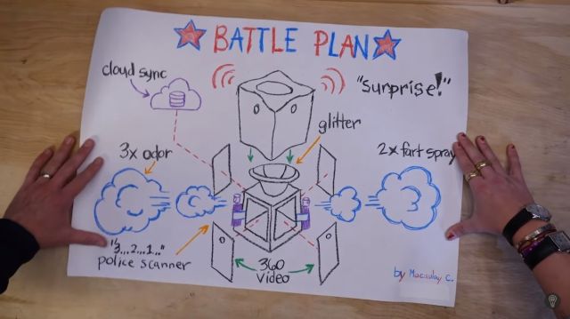 Скорее всего, фейк. Лица заквадрачены, эффект - детский, не пожалел 4 смартфона (причем никто их почему-то не увидел и не стырил). Я бы понял, если бы распылялась несмываемая краска наполовину с перцем, а вместо перделки стояла какая-нибудь "черемуха", а так - детский сад.