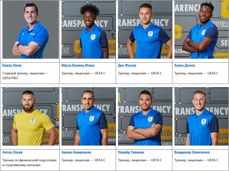 7 тренеров — из Испании, Камеруна и других стран, большинство с опытом в заграничных клубах.