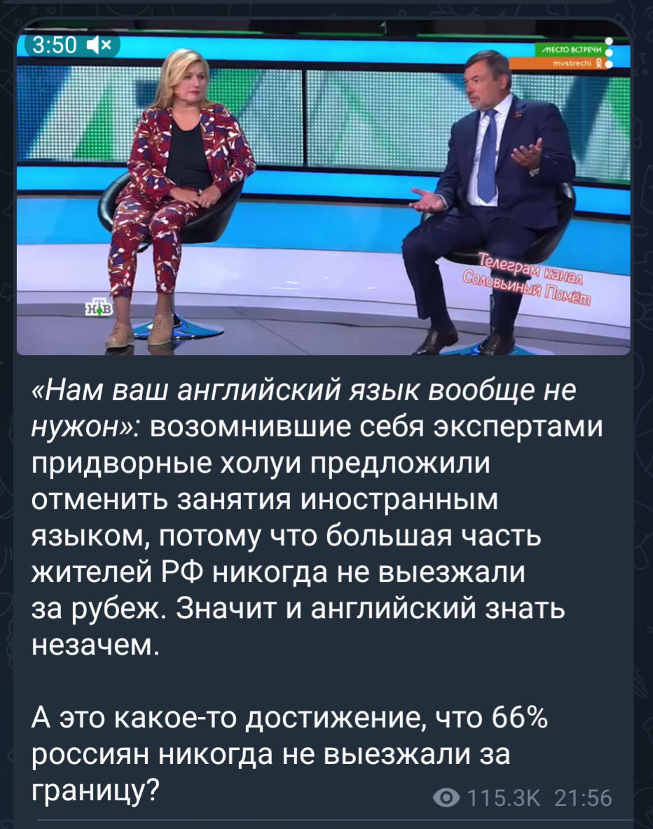 Ну, молодцы, детишки. Теперь у олимпийского резерва будет новая учительница английского. Целиком и полностью одобряющая войну с Украиной. Пока, правда, неизвестно, насколько хорошо она вообще сможет преподавать английский, но, с другой стороны, на хрена вообще этому олимпийскому резерву теперь английский? Все равно же больше никуда не поедут. Ну разве что кроме Ирана или Северной Кореи - вот там и посоревнуются. А там английский явно не понадобится.
