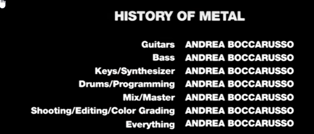 Итальянский музыкант Andrea Boma Boccarusso рассказывает и разыгрывает историю металла: на соло-гитарах, бас-гитаре и барабанах. Один.