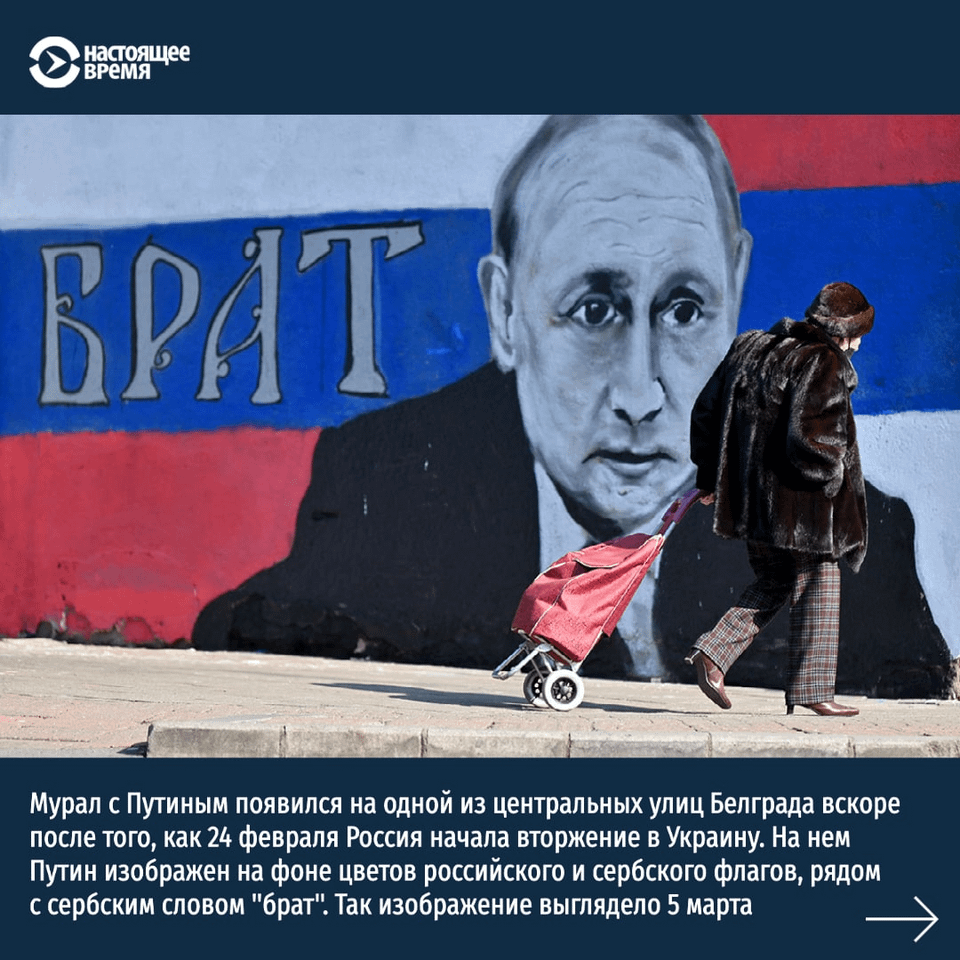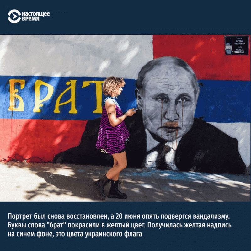 Вот сколько сербов знаю, а тут их не мало, вот все классные ребята. История с муралом (спасибо за новое слово) похожа на локальное соревнование в уперстве между пророссийскими и не пророссийскими организациями. Хотел написать между правыми и левыми но побоялся. Не разбираюсь я в сербских реалиях, не понимаю кому может в Сербии быть братом Путин. Вроде и левым, ну типа СССР и все дела, но так и правым же вполне может быть по вкусу, монархизм ведь и православие. Наш президент так скрестил разные идеологии что хрен поймёшь чё за политическое направление у него в голове.