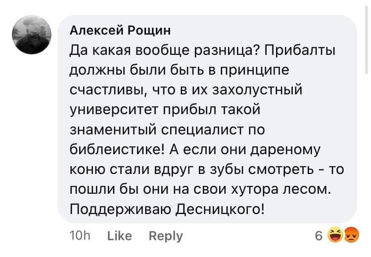 Публицист Подосокорский вчера в своем ТГ опубликовал пост о страшной несправедливости, постигшей известного российского ученого-библеиста Андрея Десницкого, которого уволили из Вильнюсского университета за - версия Подосокорского: