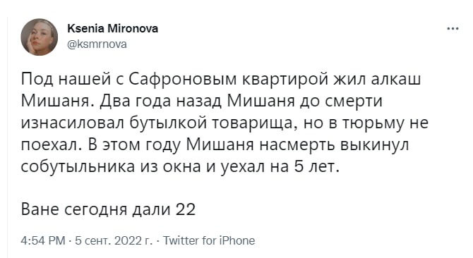 Согласен, перебор. В соседнем доме советский суд дал алкашу 4 года за убийство жены. Бытовуха. Старший сын учился в параллельном классе.