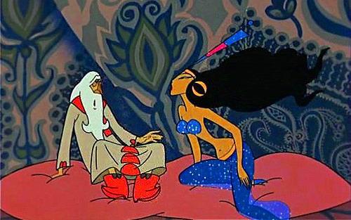 Вспоминаются добрые советские мультики: азербайджанская (шемаханская) царица в штанах, русский монарх - в платье.