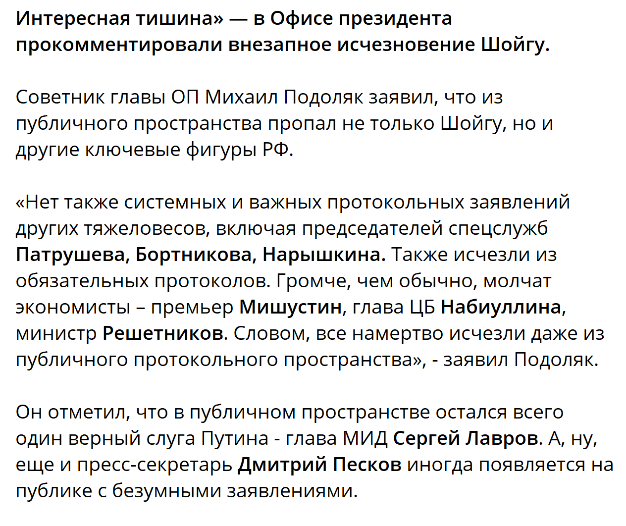 Но похоже подтверждается то что я часто читал про Хуйло, что он не стратег а тактик, и в данной ситуации похоже он изменил тактику и использует затяжную войну и полную экономическую изоляцию чтобы восстановить столь любимый им железный занавес и создать заново СССР в новой итерации. Если так, то да, все идет по плану, Песков не врет...