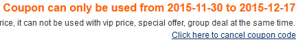 Срабатывает четко, код выдается. Получил коды на RedMi Note 2 и планшет Teclast X98 - пошел покупать. Там в корзине надо полученные коды вбить в специальное поле. Вбил - получил вот это. То есть купон можно будет использовать не раньше 30 ноября. Ну, использую, не вопрос, меня сейчас-то никто не заставляет деньги платить.