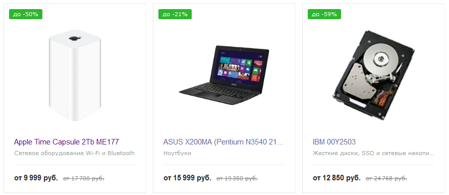 На дорогие устройства (ноутбуки) скидки поскромнее - в среднем от 10 до 25%.