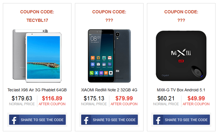 Отдельный разговор - китайские интернет-магазины. Они тоже активно участвуют в "Черной пятнице" и под нее готовят всякие промо-программы. Но там обычно действует система купонов: ты должен что-то сделать (как правило, это перепост информации в соцсетях) и за это получаешь купон со скидкой.