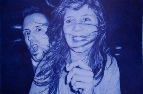 В пору моей учёбы в универе, приятельствовала я с молодым человеком, Димой Горбачевым, который вот ровно так же именно что шариковой ручкой рисовал. Особенно ему удавались портреты. Любые.