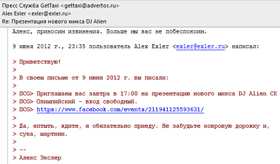Я всегда считала, что Алекс несколько преувеличивает, когда про свою переписку с фирмами рассказывает. Добавляет дерзости и мата для красного словца) Мол, они мне так, а я им вот так! А он, оказывается, и в самом деле так пишет))) Ну надо же!