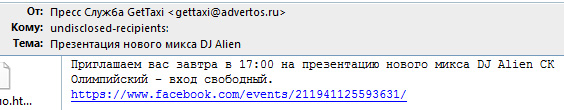 Мне они тоже это прислали. Вообще, только полные идиоты присылают приглос за день до мероприятия. И конечно, надо иногда включать мозг на тему того, КОМУ рассылать. "Презентация нового микса" - это я даже не знаю, какой аудитории интересно.