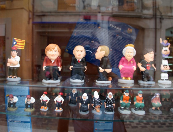 Есть в Каталонии такая странная традиция - делать фигурки какающих человечков, которые называются "каганеры". Эти фигурки нередко даже ставят на обеденные столы во время официальных мероприятий. Правда, для официальных мероприятий сами фигурки изображают известных людей - вот таких, например. (Вчера сфотографировал в Фигейресе.)