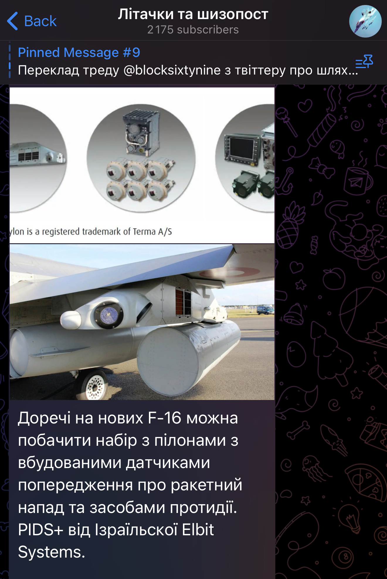 Про украинские F-16 и PIDS инфу слил Зеленский еще в августе. Там правда про датчики датские идется речь, а израильские были в 2020 заказаны для ВВС США. Шо правда не противоречит инфе про то что сейчас на наших Ф-16 могут стоять элбитовские устройства, так как США уже обьявляло про пакет помощи с элементами для Ф-16 и в него могли войти эти системы, после чего самолеты могли переоснастить.