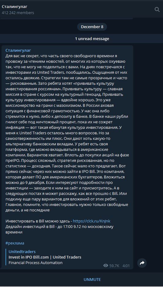 Надеюсь, UNITED TRADERS хорошо заплатили за эту рекламу. Отличный способ заработать денег на сайте инвестиций.