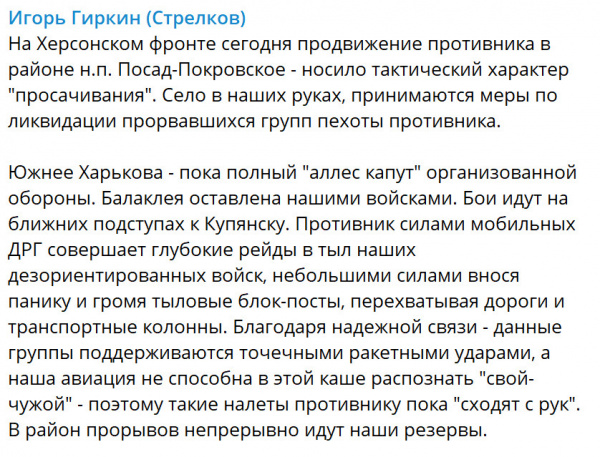 Upd: А вот что пишет Гиркин (Стрелков), который, в отличие от Неебензи, в ситуации разбирается.