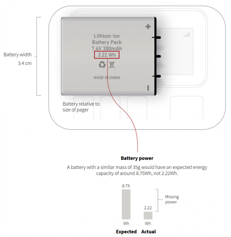 Внешне источник питания пейджера выглядел как стандартный литий-ионный аккумулятор, используемый в тысячах товаров бытовой электроники.