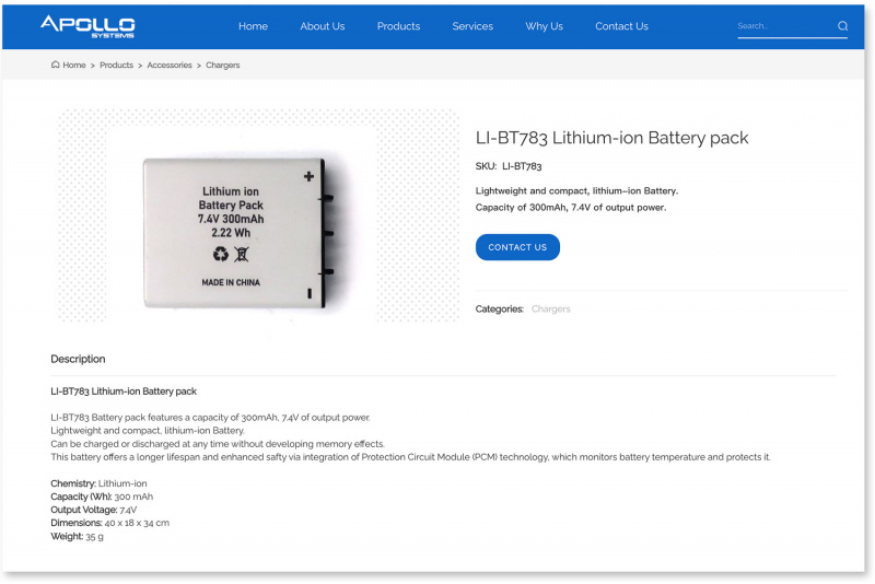 Раздел сайта apollosystemshk.com, посвященный LI-BT783, акцентировал внимание на выдающихся характеристиках батареи. В отличие от одноразовых батареек, которыми питались пейджеры старого поколения, она могла работать 85 дней в автономном режиме и заряжаться через USB-кабель, говорилось на сайте и в 90-секундном рекламном ролике на YouTube.