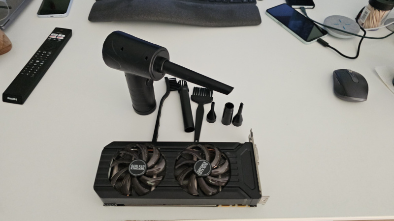 Проводили с Юным Каталаном очередной субботник по очистке системных блоков. Использовали самый мощный пылесос в доме, а результатов добились крайне скромных. Особенно плохо себя показала видеокарта из его компьютера - она довольно заслуженная: жизнь, знаете ли, повидала, и пылищи у нее в радиаторах скопилось - ужас. Пылесос эту пылищу никак не высасывает, подлезть туда - толком не подлезешь.