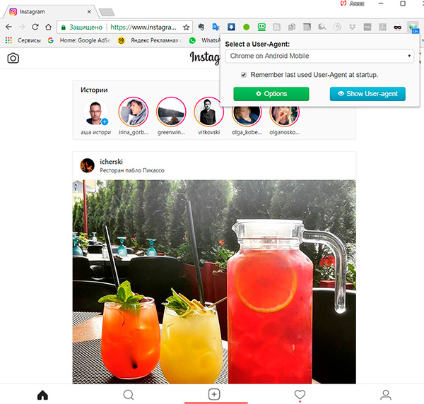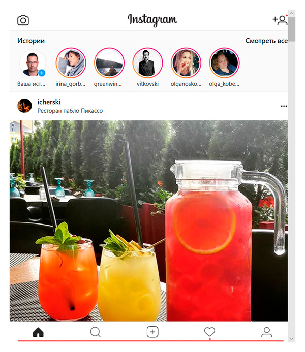 Перебрав много разных способов, остановился на BlueStacks. Это эмулятор Андроида, заточенный под мобильные приложения. Работает отлично, я и не думал, что можно сделать такую удобную вещь под нужную мне задачу. Из недостатков: в первый день подбешивала реклама игр. Теперь даже не замечаю, потому что использую лишь под инстаграм. Реклама появляется при запуске на короткое время. Потом BlueStacks висит себе весь день, не мешая открытому фотошопу и браузерам. Конфигурация ПК: i7 3770 и 16 гб памяти.