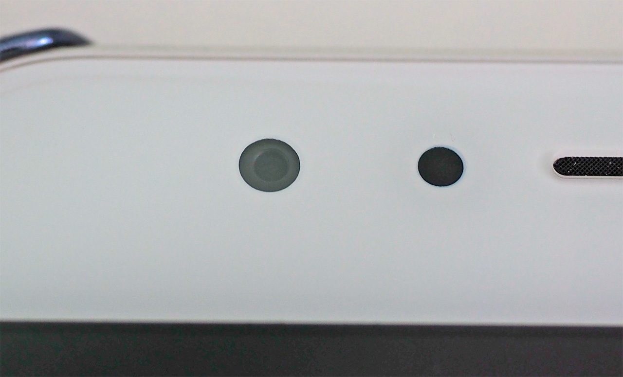 Я сначала ничего понять не мог. Ну да, глазок камеры фронталки - не по центру корпуса, он по центру вообще никогда не бывает, потому что там располагается телефонный динамик.