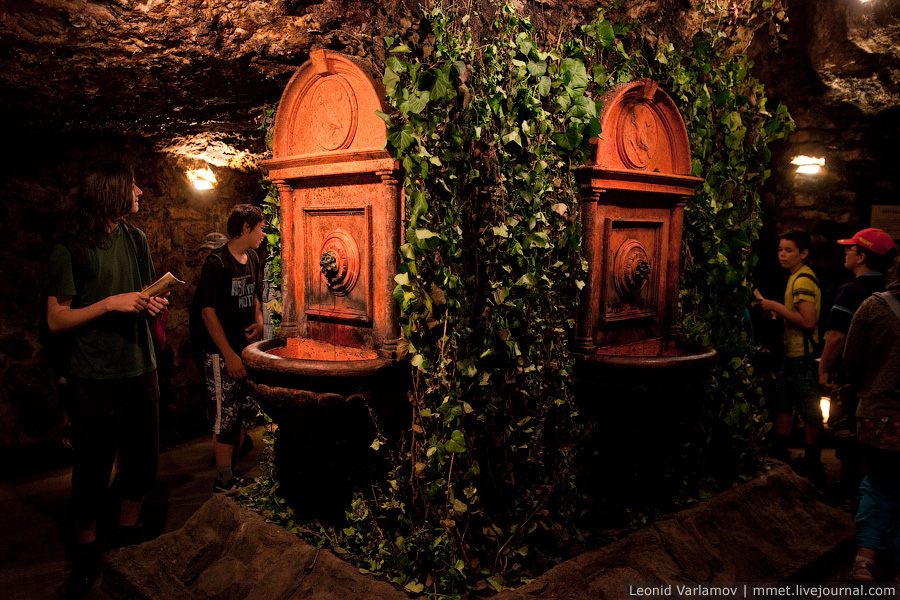 В свое время в Будапеште в лабиринте была комната в которой вино лилось из фонтана - вот нашел фотку в интернете, своей нет под рукой . Молодое вино, достаточно прикольное на вкус. Но сейчас фонтан уже не работает, видимо, это дело не окупалось.