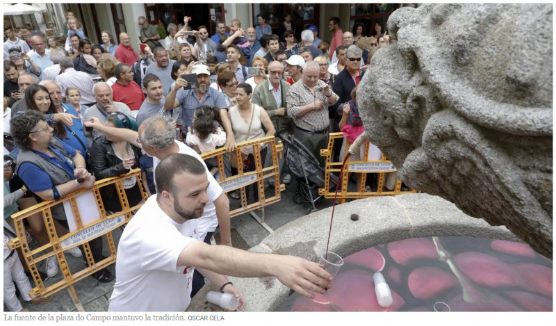 В маленьком испанском городке Луго, что в Галисии, есть относительно недавно созданная традиция. Раз в год, в день Святой Марты, покровительницы отельеров, из старинного фонтана постройки XVIII века, что стоит на Пласа-дель-Кампо, вместо воды льется вино.