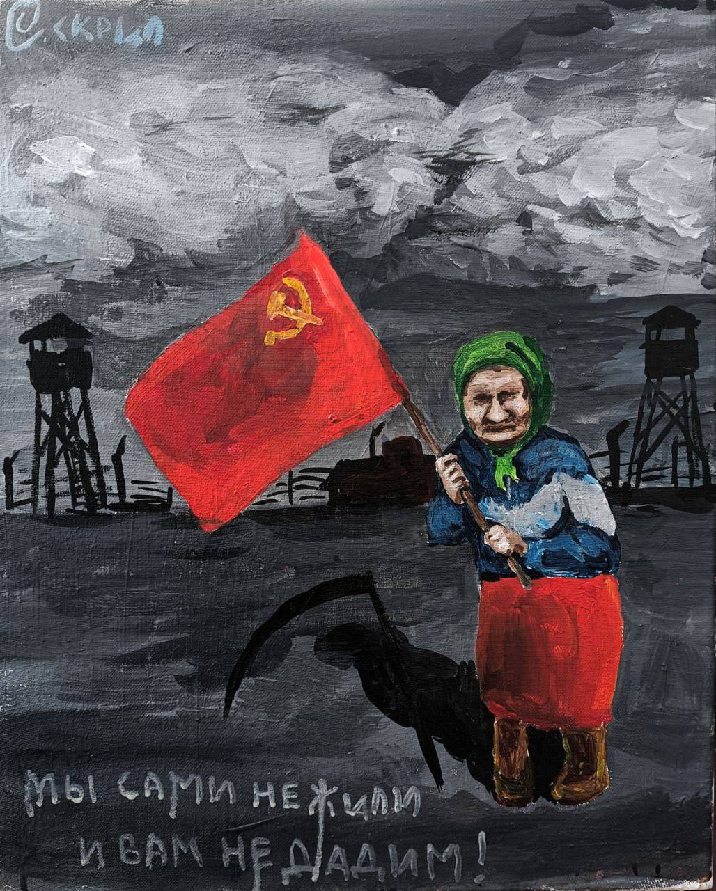 Осужденный из Красноярска нарисовал плакат с изображением украинской бабушки с красным знаменем. Трогательная история о бабушке из Харькова стала известна Александру Кравченко, отбывающему наказание в КТБ-1, из средств массовой информации.