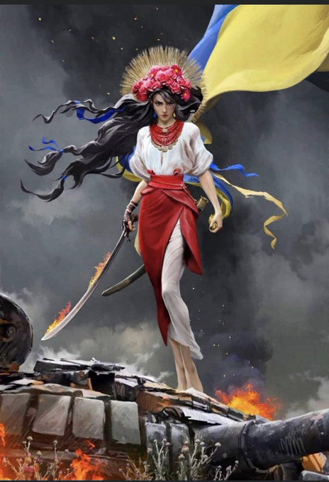 Смотрится, как военные плакаты - люди на фоне горящих руин.
