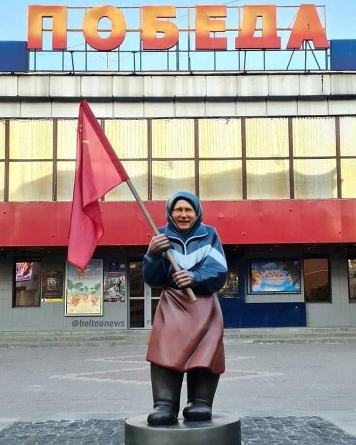 Идеальный рисунок для большинства жителей рф: бабуля с флагом ссср, на заднем фоне Zал**па, которая при это еще и горит, а тень тоже символ, рисунок в духе времени, ждем появления на всех площадях.