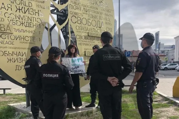 — В Уфе задержали активистку с плакатом «Мой дед воевал против фашизма»;