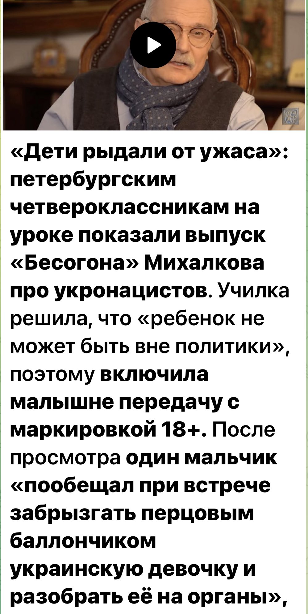 Так что до 12 лет будут повторять то, что училка расскажет. А в 16 уже будут настоящие путинюге, готовые убивать всех ради дворцов фюрера.