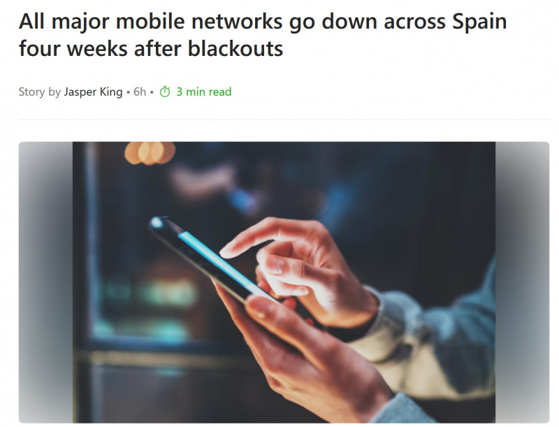 В мировой прессе это превратилось в "Вся Испания осталась без мобильных сетей и Интернета". Прикольно.