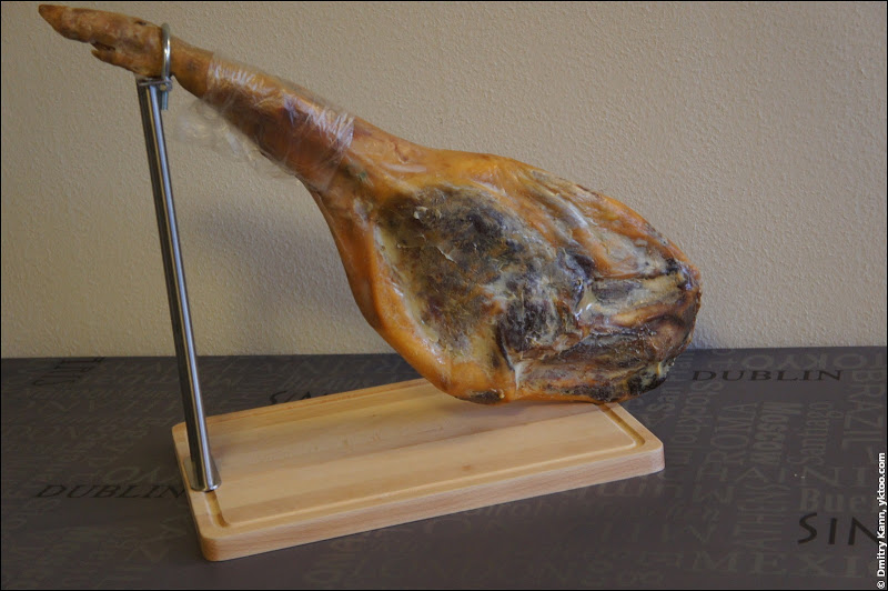 Я вам больше того скажу, даже у нас в самарской глубинке, можно брать сколько угодно тонко нарезанного на слайсере хамона. Именно так его и стоит брать, можете срезать по 100 грамм с шести разных ног и вам не придётся их все выкупать что бы попробовать. Да, стоит дорого, от 1000 рублей до 3500 за кг, но с учётом того что берётся на вечер 200-300 грамм, и не каждый день, вполне доступно среднестатистическому гражданину нашей родины.