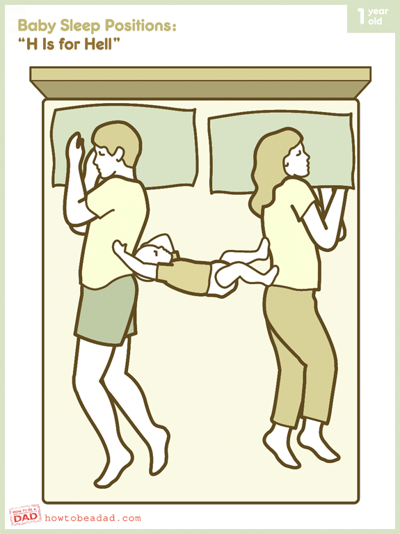 100%, именно так мы почти до трёх лет и спали когда спали в одной кровати 😄 Сейчас, иногда бывает тоже, с вариациями "N" или "И"
