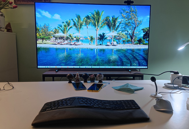 Все-таки очень удобно иметь монитор с кучей портов HDMI, а также клавиатуру и мышку, которые поддерживают подключение одновременно до трех устройств.