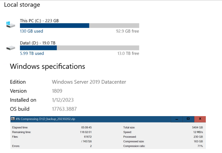 Мне надо перекачать 6 терабайт с сервера (сваливаю с работы, остался месяц). Где-то 750,000 файлов (картинка). Сервер в моем распоряжении пока, до ухода. Cтарый (10 лет), но недавно обновили ОС. Проблем не было.
