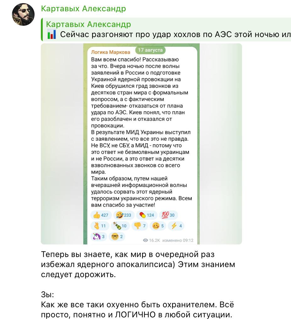 Ну так они уже градирню ЗАЭС подожгли, и обвинили в этом украинцев. Только никто в «украинский ядерный терроризм» не поверил, не осудил и помощь не прекратил. Вот накал истерии и решили повысить