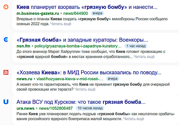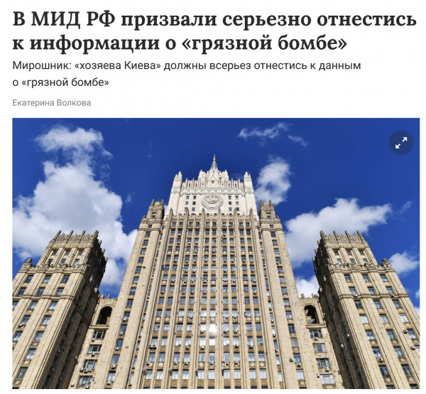 Так это методы информационной войны. Запустить панику, чтобы все вокруг запричитали, забегали, перестали помогать плохой Украине. Подумали бы что нет дыма без огня. Если все обсуждают грязную бомбу, то уже нет смысла искать, кто первый дал новость