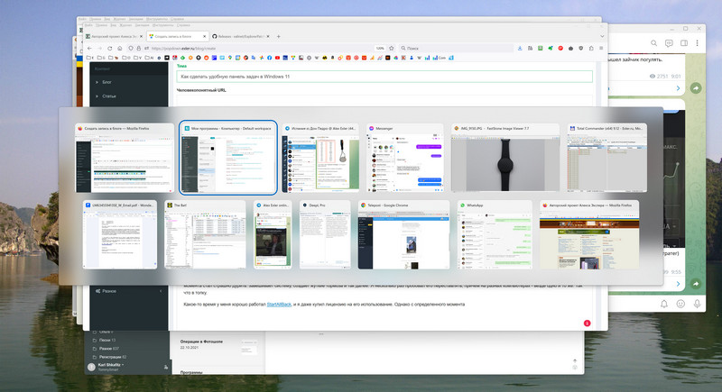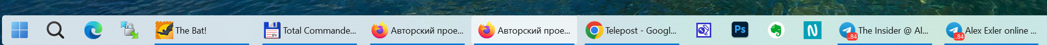 Как известно, в Windows 11 эти идиоты прекрасные люди полностью испохабили старую удобную панель задач и сделали ее как у Mac OS, что лично меня приводит просто в бешенство, потому что я постоянно использую несколько копий одинаковых программ (пара окон браузера, пара окон Телеграма и так далее), и меня категорически не устраивает сначала наводить мышку на соответствующую пиктограмму и там выбирать нужное мне окно.