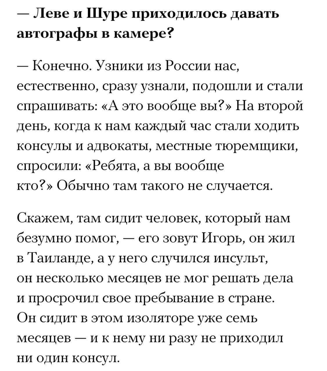 ▪️Когда депортация через Россию не удалась, тайские власти предложили вывезти музыкантов через Турцию, так как все они прилетели из этой страны. Дальше россияне должны были отправиться в Россию, а израильтяне — в Израиль. Источники в Турции, по словам Каца, сообщили активистам, что российское посольство в Стамбуле начало заниматься вопросом, чтобы по прилету в Турцию всех посадить на самолет в Москву. В Таиланд из Турции даже прилетел адвокат, который должен был сопровождать музыкантов на рейсе, если бы он состоялся, сказал Кац.