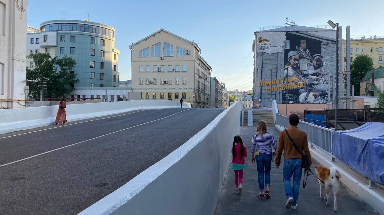 Понятно, что решение не самое лучшее. Но видно, что пешеходный тротуар расширили. Скорее всего, без опускания его уровня это сделать было невозможно.